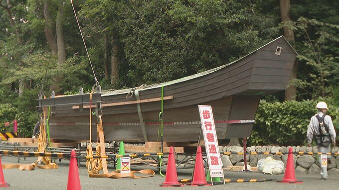 福岡市中央区の福岡縣護国神社では、22日、高さ約13メートルの木製鳥居の解体作業が始まりました。創建から80年を迎えた福岡縣護国神社では安全面の確保と老朽化の進行防止のための改修工事が8月下旬から行われています。前回の改修工事は30年前で、鳥居の表面のひび割れや接合部分の隙間の補修などが施されましたが、実際に鳥居を解体して行う工事は今回が初めてです。解体後は腐食している部分をくり抜き、その部分を木や防腐剤などで埋めていく作業などが行われます。