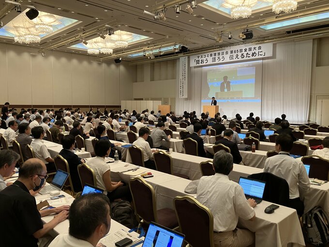 宮崎で先週開かれた65回全国大会にはリアルで200人以上、オンラインも入れると300人が参加。「南海トラフ巨大地震への備えと報道」「南西諸島有事とメディア」「新たな人権報道への試み」など6つの分科会が設けられ、活発な議論が展開された。