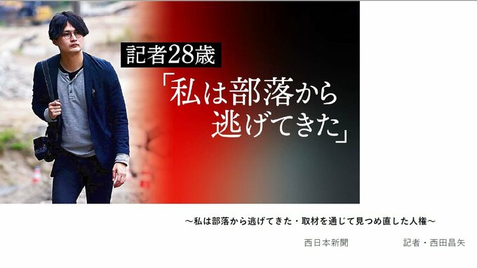 西日本新聞社(本社・福岡市)社会部の西田昌矢記者は、いわゆる被差別部落に生まれ、なるべくそのことを考えないようにして生きていた。去年4月、『記者28歳 「私は部落から逃げてきた」』(全8回)という連載を書き、大きな反響を集めました。