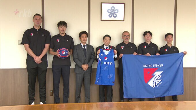 今月6日に開幕戦を迎えるプロバスケットボールB2のライジングゼファー福岡の選手たちが福岡県知事に今シーズンの飛躍を誓いました。