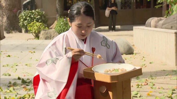 櫛田神社でぎなん落とし 収穫した実は夫婦円満や子孫繁栄のお守りに 博多にも秋の訪れ 2023年10月5日(木) 12:15 国内 福岡市の櫛田神社では、ご神木のイチョウの実を収穫する博多の秋の風物詩、「ぎなん落とし」が行われました。櫛田神社では5日、「ぎなん落とし」の神事が行われ、神職が境内のイチョウの木=ぎなんの前でお祓いを…