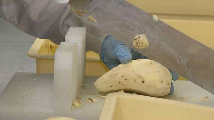 収穫したサツマイモを大学芋に加工する那珂川キッチンでも、熟練の勘が必要な飴つけの工程以外は、すべて障害者が担っています。
