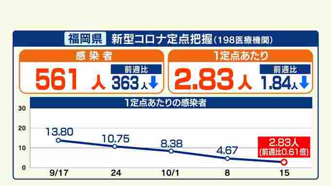 一方、新型コロナの定点あたりの報告数は2.83人と5週続けて前の週を下回っていますが、寒くなれば、再び増加する恐れもあります。これから冬に向けて感染対策はより重要になってきます。