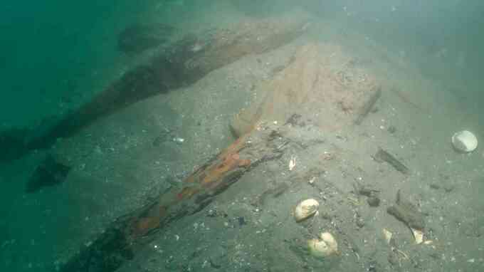 RKB今林隆史(今月19日)「海底面から1メートル掘り下げたところに木材が並んでいるのが見えます。先にも多くの遺物が埋まっています」