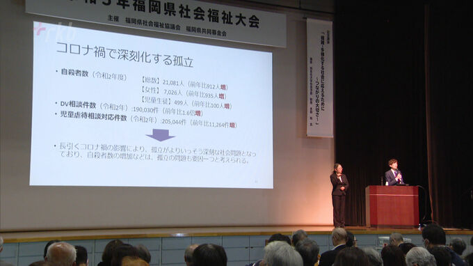 23日午後開かれた福岡県社会福祉大会には、社会福祉協議会の関係者や民生委員など約770人が参加しました。大会ではまず、地域福祉に詳しい同志社大学の永田祐教授が、「地域共生社会」をテーマに孤立する人が増えるなか、役割や居場所といった「つながり」を作ることが大切だと呼びかけました。
