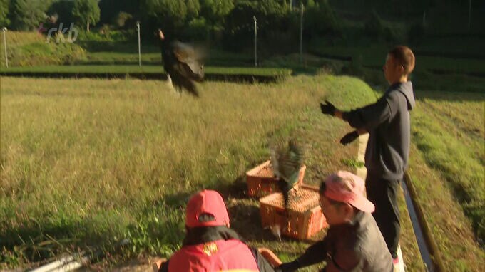 佐賀県嬉野市、鹿島市、白石町の3か所で24日、放鳥されたのは生後150日前後の「ニホンキジ」150羽です。「キジ」は、日本の国鳥に指定されていて、オスは顔が赤で胸は光沢のある緑色、メスは全身が黄土色でともに尾が長いのが特徴です。