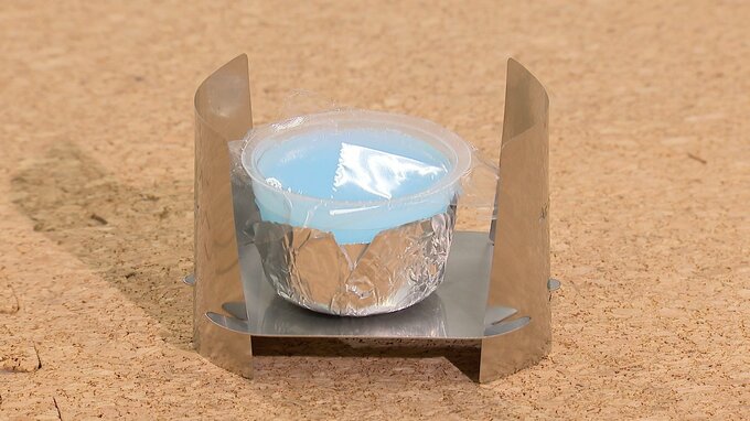 その中に、コップと固形燃料と五徳と風防とライターなどすべて収めて持ち運ぶんです。