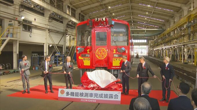 線路のゆがみを測定する新型の検測車を公開 JR九州「検査業務の効率、究極をめざす」 2023年10月26日(木) 15:02 国内 JR九州は、線路のゆがみを測定するレーザーや高機能カメラを搭載した新型の検測車を公開しました。JR九州工務部 中島剛志担当部長「AIを介して状態の判断をしていく。人の手を介さずに省力化して検査業務を…