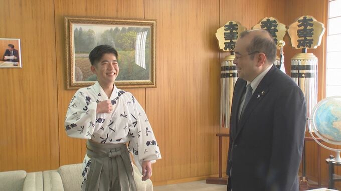 太宰府市役所を訪れたのは大相撲で呼出を務める安希隆さん(17)です。安希隆さんは太宰府市出身で、5歳の時から土俵で力士の名前を呼び上げる呼出を志し、今年5月の大相撲で現役最年少デビューを果たしました。