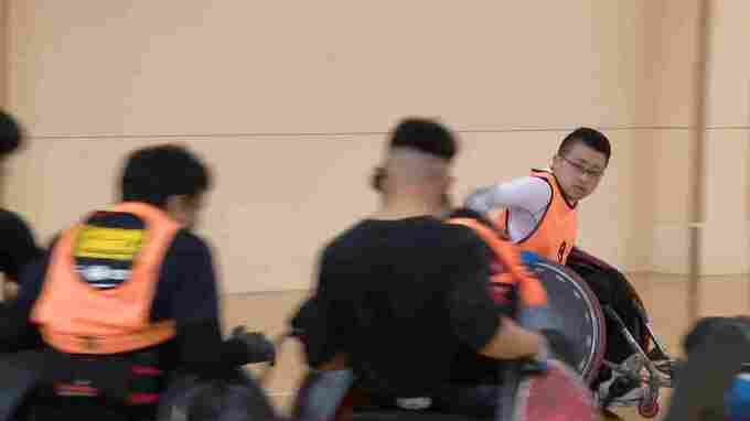 ◆車いすを激しく接触させて“タックル”