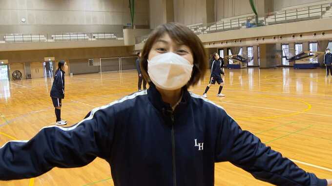 RKB堤千春「こちらが、再生ポリエステル100%で作られた体操服です。非常に軽くて着心地よいですよ」