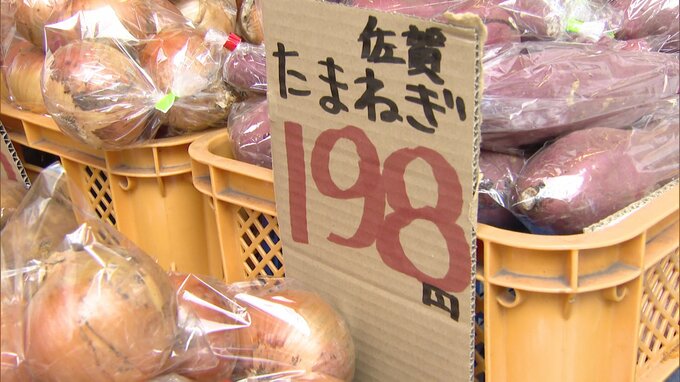 RKB小松久里子「L玉2個入りのこちらの玉ねぎ、高い時は280円まで上がったそうですが、今は198円に落ち着いています。これでも例年より50円ほど高いということです」