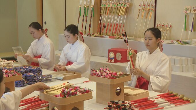 清々しい新年に向けて開運の矢に“絵馬”200万人の参拝客を見込む太宰府天満宮で正月の縁起物の準備始まる 2023年11月22日(水) 14:17 国内 ◆約200万人の参拝客を見込む 太宰府天満宮は、今年5月から御本殿の改修工事を行っているため来年の初詣は仮殿での参拝となりますが平年並みの200万人の参拝を見込んでいます。縁起物は来月1日から授与されます。