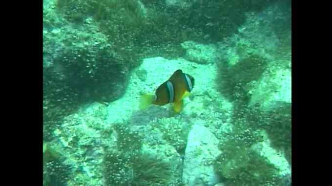 「イソギンチャクの間から姿を見せているのは熱帯魚のクマノミです」