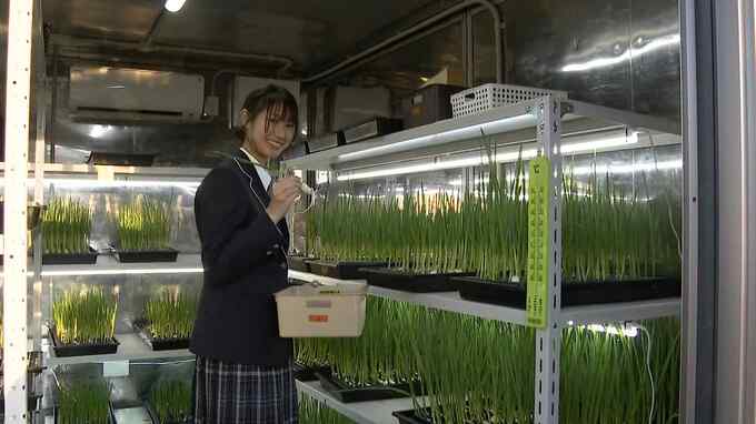 このにんにくが栽培されているのは、学校の運動場に設置されたコンテナです。中に入ってみると水耕栽培されているにんにくがずらりと並んでいます。生産に取り組んでいるのは、今年6月に誕生した「にんにく部」。部員は、1年生2人と3年生2人の計4人です。市内の企業と共同でにんにくの栽培と袋詰め作業などを行っています。