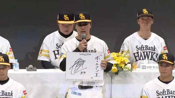 ホークスに入団が決まった新人選手たちの発表会見が4日、行われ、支配下と育成合わせて15人のルーキーが意気込みを語りました。