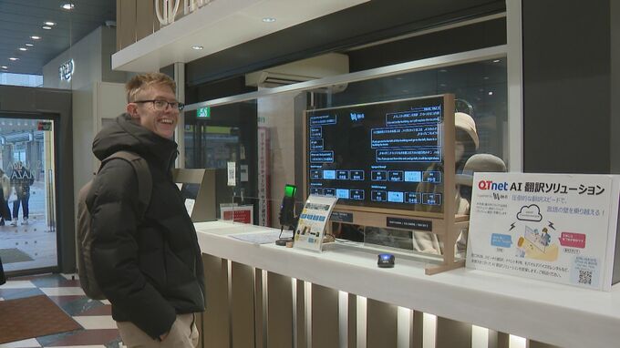 開発した台湾のスタートアップ「VM-Fi」は去年、博多駅で同様のシステムを披露しており、今回の製品はその改良版という位置づけです。旧製品と比べると、文字の表示がディスプレイ1枚で完結するようになり、画面越しではあるものの、視線を合わせたコミュニケーションが取りやすくなりました。また、より小型のものも新たに用意され、置き場所の選択肢も広がりました。共同で実証実験を行う福岡市の通信事業者QTnetの藤井直樹さんは「九州で外国企業の誘致もかなり進んでいるので、暮らしやビジネスに快適な環境を提供できたら」と話しています。この実験は来月19日まで行われます。QTnetは、有効性が確認できれば全国の駅や空港、自治体の窓口などに設置したいと説明しています。