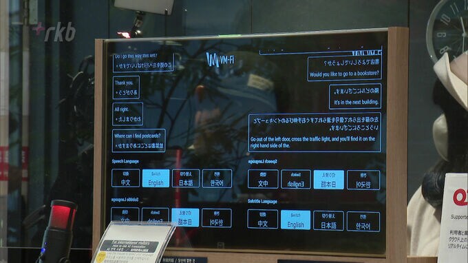 台湾の企業が開発した透明なディスプレイを挟むだけで、リアルタイムに翻訳された文字を見ながら対話できる製品が機能改善を受け、福岡市の百貨店で21日、デモが始まりました。去年、博多駅で披露されたものに比べると、視線を合わせた実際の会話に近い感覚で使えるのが最大の特徴です。外国からの観光客やビジネスパーソンに対応するために、案内窓口などでの活用が想定されています。