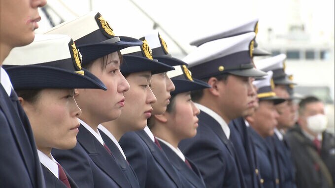 26日午前、博多港で開催された「巡視船やしま」の出港式には乗組員や見送りの家族など約90人が参加しました。