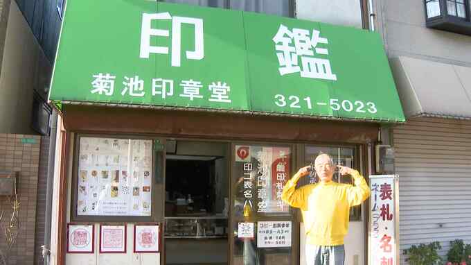 鮮やかな黄色のセーターを着たこちらの“おじさん”こそ「おじ焼き」のモデル、菊池正幸さん(75)です。64年続くはんこ屋さんを営んでいる菊池さんは、今でも手彫りにこだわる印鑑職人です。