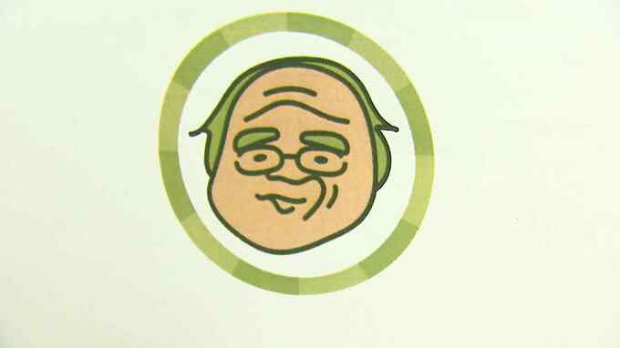 「おじ焼き」の売れ行きは好調ということで、開発した企業は、「おじさん」をモデルにした新商品の開発を薦めています。この日は、飴のモデルになる新たな「おじさん」に、できあがった顔のイラストを確認してもらうとのことで、記者も同行しました。向かったのは、お茶屋さん。待っていたのは、緑の法被を着た店主の岡崎勤さん(76)です。