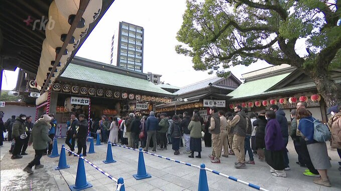 福岡市博多区の十日恵比須神社の正月大祭は8日が「初えびす」で参道には露店が並び商売繁盛を願う人や家族連れで午前中から賑わっています。熊手などの縁起物が当たる「福引き」には、参拝者が長い列を作り、境内には福引きの当たりを知らせる威勢のいい声が響きました。