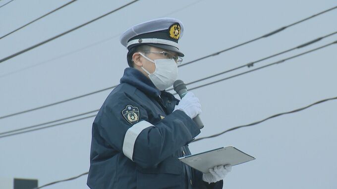 12日午前、福岡市東区名島の交差点では、交通安全DJポリスが自転車の利用者に対してヘルメットの着用や見通しの悪い交差点では一旦停止するよう呼びかけました。近くの交差点では、1月7日に、横断歩道を自転車で渡っていた84歳の男性が右折してきた軽乗用車にはねられ、死亡する事故が起きています。