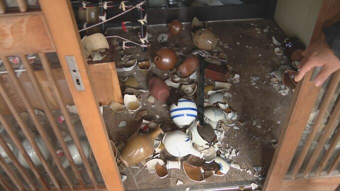 車で移動していても視界に入ってくるのは倒壊したビル、道を塞ぐように倒れた家、隣の家によりかかるように傾いた状態で止まった家も。いつ倒れても不思議ではない。倒壊した建物で通行できない場所があちこちにあり、何度も引き返した。でこぼこのアスファルトでタイヤがバーストしないようにゆっくりと進む。雨のせいか、出歩く人はほとんどいなかった。その時、原形をとどめている家屋の中で、スマートフォンを触る男性が見えた。取材に応じてくれた宮崎哲也さん(58)。輪島市で古美術店を営んでいて、大規模な火災に見舞われた輪島朝市にも出店していた。宮崎さんは地震後、朝市の店舗の様子を見に行った際、スマートフォンで動画を撮影していた。「ここから何を掘り出すって・・・」漏れた言葉から途方に暮れた様子が伝わる。映像からかろうじて分かるのは店の屋根のみだ。「江戸時代の徳川家の塗り物とかそういうのもあったんですけど、それも多分無理でしょうね」、そう話す宮崎さん。近くにあったもう一つの店舗とあわせて輪島塗や有田焼など数千点を失ったという。