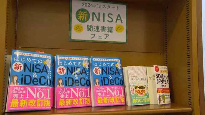 RKB町田有平「書店の一角に設けられた特設コーナー、表紙にはいずれも新NISAの文字が躍っていて、関心の高さがうかがえます」