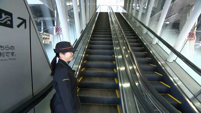 ななつ星が出発するホームにつながるエスカレーター。3階に広々としたスペースがありました。