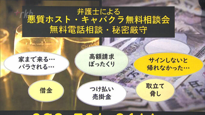 支払能力をはるかに超える高額請求の「悪質ホスト」問題に司法の手…弁護士会が“無料電話相談”を実施 2024年1月22日(月) 11:52 国内 ホストクラブやキャバクラなどからの高額請求で悩んでいる人を対象とした無料の電話相談会が22日、福岡市で開かれています。 福岡市中央区の福岡県弁護士会館では、22日午前10時からホストクラブやキャバク…