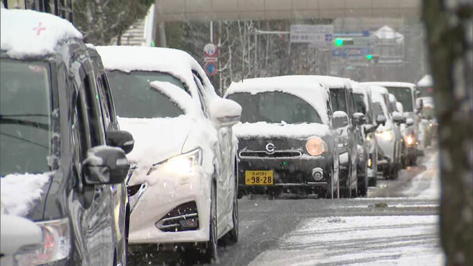 また、雪の影響で、大分道と長崎道の全線や九州道の植木インターチェンジから小倉東インターチェンジの間が通行止めとなっていて、福岡と九州各地を結ぶ高速バスも運行を見合わせています。日中の気温は5℃前後までしか上がらない見込みで、気象台は引き続き降雪や路面凍結などに注意するよう呼びかけています。