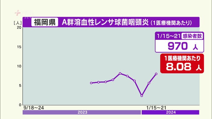 A群溶血性レンサ球菌咽頭炎の感染者数が警報レベル超える 新型コロナ、インフルエンザも増加傾向~福岡県 2024年1月25日(木) 15:57 国内 福岡県によりますと、県内のA群溶血性レンサ球菌咽頭炎の感染者数が警報レベルを超えました。また、インフルエンザと新型コロナウイルスの感染者も増えています。今月21日までの1週間のA群溶血性レンサ球…