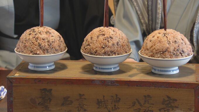 ご飯についたカビの付き具合などで農作物の出来を占う「粥開き(かゆびらき)」が1日、福岡市の寺で行われました。