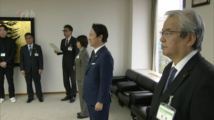 6日午前、北九州市役所では石川県白山市に派遣される教職員3人の出発式が開かれました。白山ろく少年自然の家では、輪島市で被災した中学生138人が親元を離れて集団生活を送っていて3人は夜間の生活指導などを行う予定です。