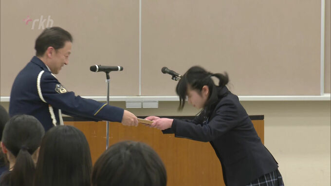 12日、福岡県警本部で行われた表彰式には、高校生たち約40人が出席しました。審査の結果、ポスター部門では真颯館高校の生徒の作品「いつも側に、私の相棒」、動画部門では武蔵台高校の作品「ヘルメットで助かる命」が、最優秀賞に選ばれました。