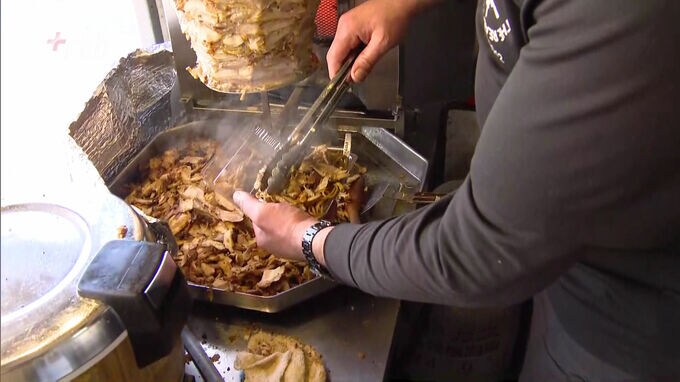 北九州市若松区のグリーンパークで開かれている「麺祭り」には、キッチンカー12台が集まり、やきそばやパスタなどをその場で調理しています。焼きそばの上に中東料理のケバブをのせたメニューは、この「麺祭り」イベントのために開発されました。
