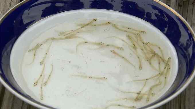 シロウオは体長5センチほどのハゼ科の魚で、2月中旬ごろに海から遡上し、川底の石の下に産卵します。江戸時代から300年以上続くとされる室見川のシロウオ漁は、福岡に春の訪れを告げる風物詩として親しまれてきました。生きたまま流し込む「躍り食い」や天ぷらなどが有名です。