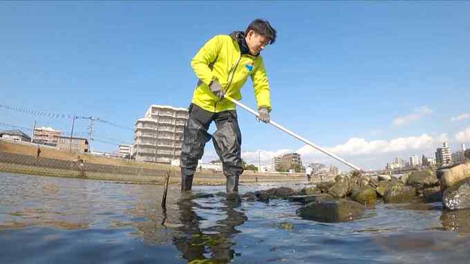 福岡市の西部を流れる室見川。2月上旬、シロウオの産卵場所を整備するため、漁業関係者や大学の関係者、地元住民など約120人が鍬やスコップを使って砂の下に埋もれている石を掘り起こしていました。