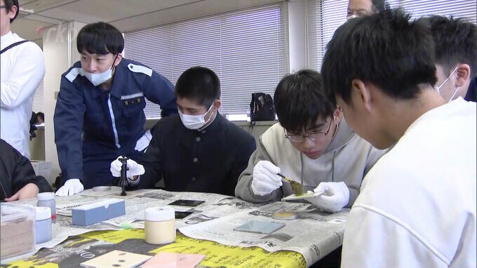 門司港湾合同庁舎で開かれた職場体験会には、高校生や専門学校生など約40人が参加しました。参加した人たちは海上保安官の指導のもと、指紋の採取などを体験したほか、実際に巡視船に乗り込み、機関銃などの装備を見学しました。