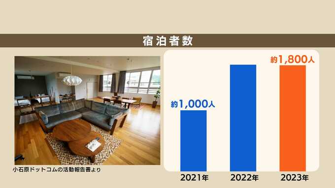 小石原ドットコムが村に提出した活動報告書によりますと、2021年に1000人程度だった宿泊者数は去年およそ1800人に増加。