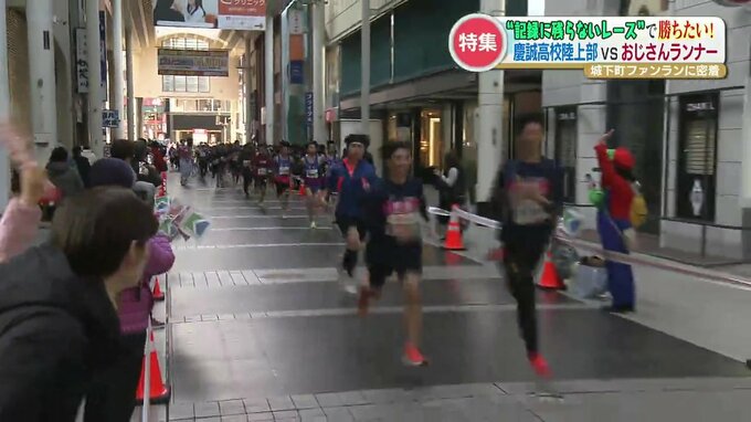 「上通アーケード」に怒涛の勢いで選手たちが入っていきます。先頭は慶誠高校陸上部!そしてその後ろに中山さんがついている。