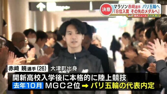 熊本県大津町出身で、開新高校入学後に本格的に陸上競技を始めた赤﨑暁(あかさき あきら)選手(26)は、去年(2023年)10月のマラソン・グランド・チャンピオンシップで2位に入り、パリへの切符を掴みました。