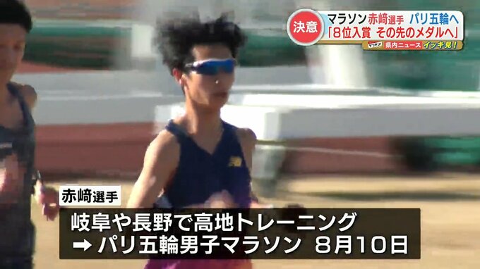 県関係選手が男子マラソンで五輪に出場するのは金栗四三(かなくり しそう)さん以来、100年ぶりです。赤崎選手は今後、岐阜や長野で高地トレーニングを重ね、8月10日の本番に備えます。