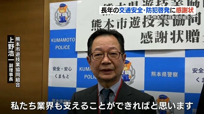 熊本市遊技業共同組合 上野浩一副理事長「しっかりとこれからも(活動を)継続して県民・市民の方が安心して暮らせる安心安全な街を、しっかりと私たち業界も支えることが出来ればと思います」