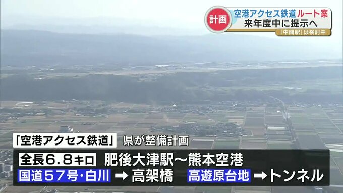JR肥後大津駅と熊本空港を結ぶ空港アクセス鉄道について、県は来年度内に全体のルート案を示す考えを明らかにしました。