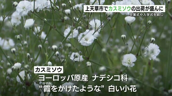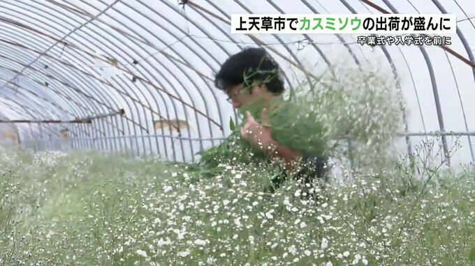 この春の卒業式や入学式に向け、熊本県上天草市ではカスミソウの出荷が盛んに行われています。