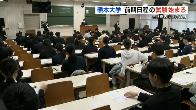 国公立大学の「前期日程」の試験が始まる 熊本大学の前期日程の平均倍率は『2.4倍』 2024年2月25日(日) 12:07 国内 国公立大学の前期日程の試験が始まり、熊本大学でも受験生が試験に臨んでいます。試験会場の黒髪キャンパスでは小雨が降る中、試験直前まで参考書を開く受験生の姿が見られました。受験生「ここまでやってきたので…