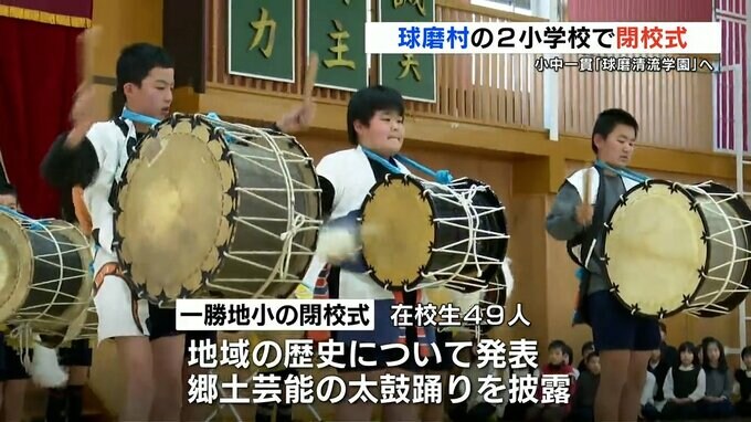 またきのう(3月3日)は、一勝地(いっしょうち)小学校でも式が行われ、在校生49人が地域の歴史について発表し、郷土芸能の太鼓踊りを披露しました。