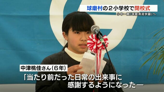 熊本県の球磨村では、4月から村内3つの小中学校を再編し、小中一貫の義務教育学校が開校するのを前に、3月一杯で役目を終える学校の閉校式が行われました。